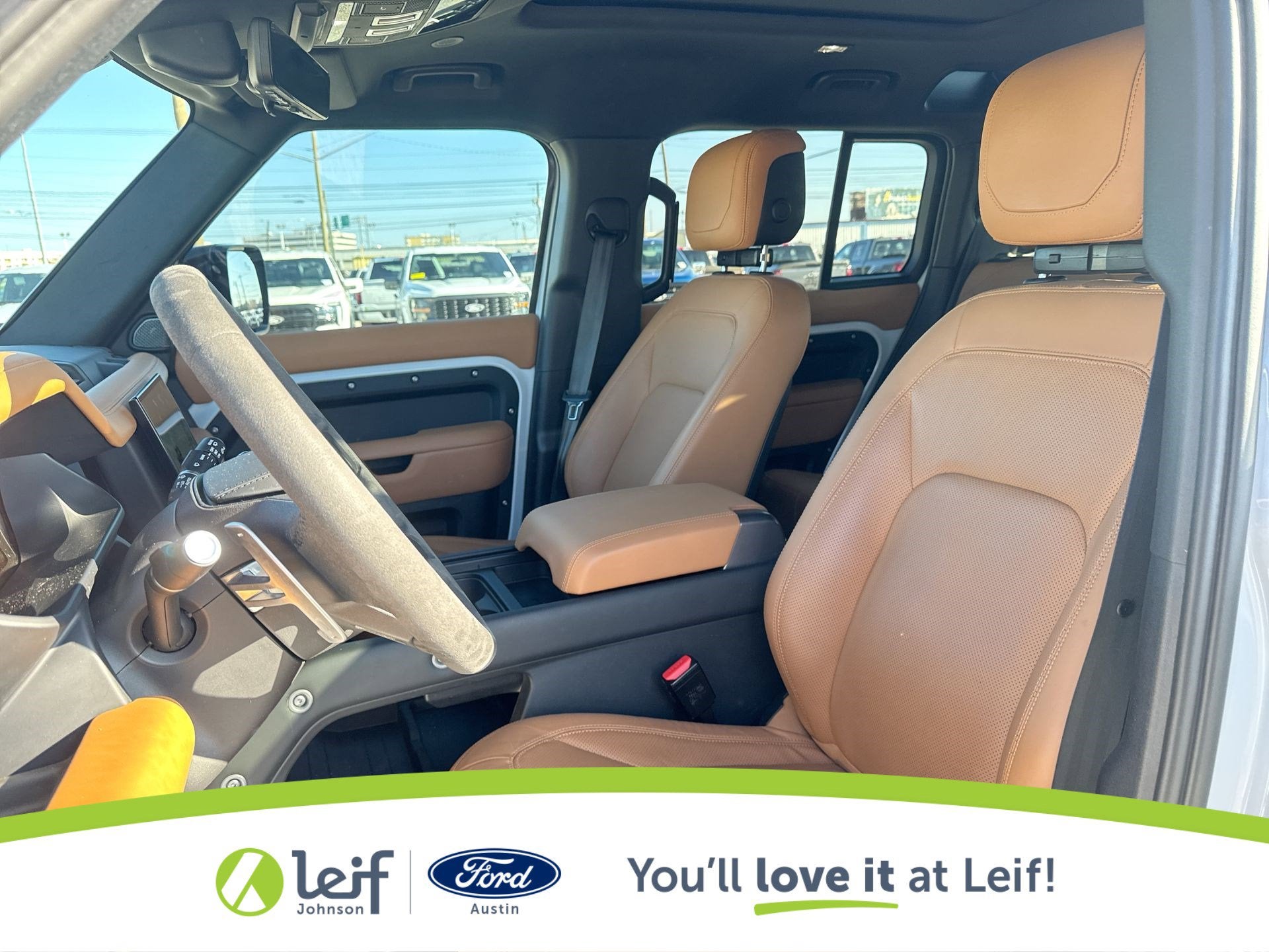 Clean CARFAX. 2023 Land Rover Defender 110 Yulong White Metallic V8 4WD 8-Speed Automatic **CLEAN CARFAX**, **LOCAL TRADE**, **NON SMOKER**, **4WD**, **NAVIGATION**, **REAR VIEW CAMERA**, **KEYLESS ENTRY**, **APPLE CARPLAY, **TOW PKG**, **LEATHER**, **BLIND SPOT WARNING SYS**, ABS brakes, Alloy wheels, Compass, Electronic Stability Control, Front dual zone A/C, Heated door mirrors, Heated front seats, Heated rear seats, Illuminated entry, Low tire pressure warning, Power moonroof, Remote keyless entry, Traction control, Windsor Leather Seat Trim. 14/19 City/Highway MPG 5.0L V8 Get a Pre-Loved Pre-Owned vehicle from Leif Johnson Ford! Come experience the transparent sales process and haggle free shopping here at Leif Johnson Ford. We have One of the largest pre-owned vehicles selection in the Austin area and they are all PRICED TO SELL. At Leif Johnson Ford, our commitment to our customers produces One of the most valuable assets and that’s trust! We know you can’t buy trust. You have to earn it! People have come to know that they can trust Leif Johnson Ford for the right selection, the right price and the right service . Ask us about purchasing this vehicle without ever visiting the dealership! Call us today at 512-706-6270 or stop by and see us at 501 East Koenig lane . Ask us about 7 day money back promise!! 501 E Koenig Ln Austin TX 512-706-6270. CALL OR COME BY TODAY. Call 512-706-6270 with any questions about this quality pre-owned vehicle. See it today at Leif Johnson Ford Superstore located at Airport and Koenig Lane. 512-706-6270.